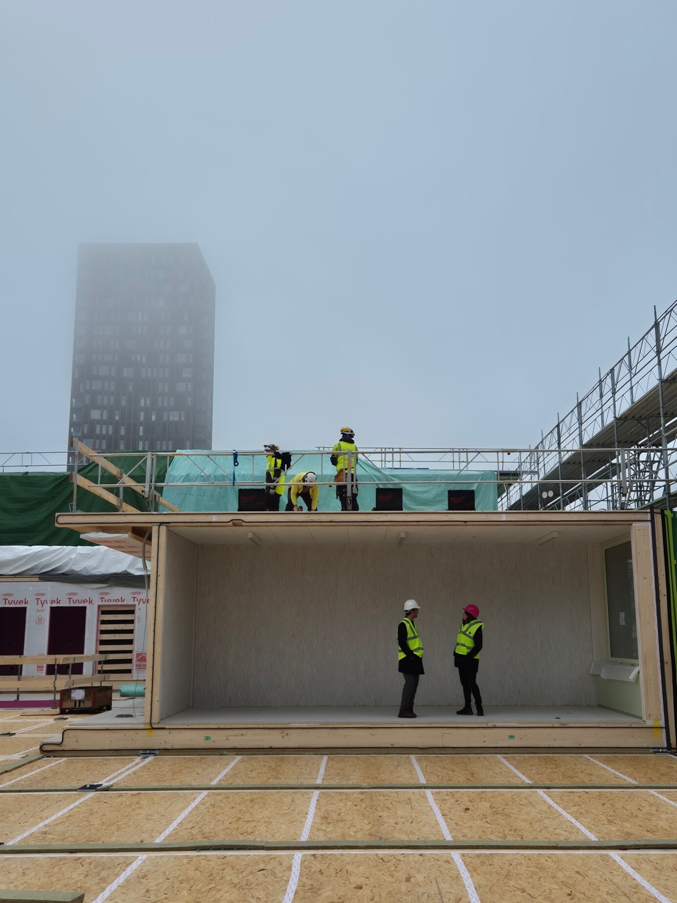 Auch in der kalten Jahreszeit geht es auf unserer Baustelle zügig voran. Während draussen die Temperaturen sinken, wird drinnen intensiv gearbeitet: Der Fokus liegt nun auf dem Innenausbau. Klassenzimmer, Fachräume und Gemeinschaftsbereiche nehmen allmählich ihre endgültige Form an. Schritt für Schritt wird sichtbar, wie hier schon bald gelernt, diskutiert und gestaltet werden wird. Aber auch draussen wird in den Wintermonaten hart gearbeitet: Dank dem Fertigungsgrad von 85% (ein Blumer-Lehmann interner Rekord), mit welchem die Module auf der Baustelle ankommen, geht der Ausbau zügig von voran. Es werden 18 bis 20 Module am Tag(!) verbaut, wofür 8 Lastwagen eingesetzt werden. Bei seiner Fertigstellung wird die Filiale Dübendorf der grösste Modulbau in der Schweiz sein.